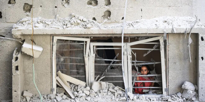 Home / Photo / A Palestinian child looks out of the window of a building damaged in an Israeli strike on the Nuseirat refugee camp in central Gaza. About 6,400 Palestinians reported as missing to the International Committee of the Red Cross since the outbreak of the war in Gaza on 7 October are yet to have been found, the group has said