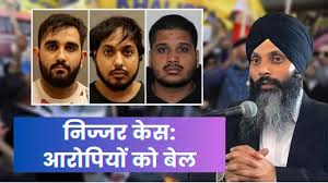 कनाडा के सुप्रीम कोर्ट ने खालिस्तानी आतंकवादी हरदीप सिंह निज्जर की हत्या के आरोपी चार भारतीयों को जमानत दे दी है। इन चारों पर निज्जर की हत्या और हत्या की साजिश रचने का आरोप था। जिन चार आरोपियों को जमानत मिली है, उनका नाम करण बराड़, अमनदीप सिंह, कमलप्रीत सिंह और करणप्रीत सिंह है। इस मामले में अगली सुनवाई 11 फरवरी 2024 को ब्रिटिश कोलंबिया सुप्रीम कोर्ट में होगी। खबरों के अनुसार, जमानत सबूतों की कमी के कारण दी गई है।
