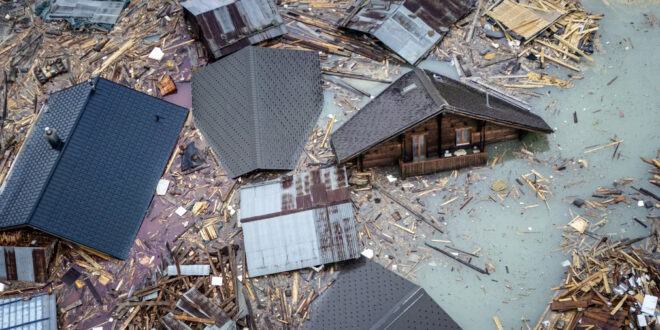 Home / Photo / Blatten, Switzerland Destroyed houses submerged in water from the Lonza River in the aftermath of an avalanche caused by the collapse of the Birch glacier. ‘Blatten has been wiped away. Erased, obliterated, destroyed, stamped into the ground,’ said the village’s mayor, Matthias Bellwald. ‘The memories preserved in countless books, photo albums, documentation – everything is gone. In short, this is ground zero for Blatten.’