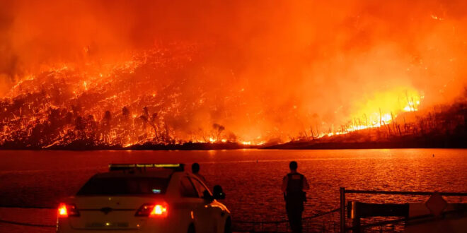 Home / Photo / California, US Law enforcement officers watch as the Thompson fire burns over Lake Oroville in Oroville. A heatwave is sending temperatures soaring, resulting in red flag fire warnings throughout the state