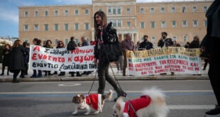 Athens, Greece A woman walks her dogs while taking part in a rally staged by Greece’s largest public sector union to protest over low salaries and rising living costs, as the country’s parliament votes on the 2026 budget Photo Read More » Share Twitter