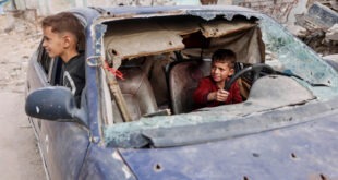 Gaza City, Gaza Strip Displaced Palestinian children play in the wreckage of a car in the neighbourhood of Tel al-Hawa. The Palestinian death toll has surpassed 70,000 since the Israel-Gaza war began, Gaza’s health ministry said last weekend. Photo Read More » Share Twitter