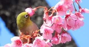 A bird perches on a branch of an early-blooming cherry tree at the Ebara shrine in Tokyo Photo Read More » Share Twitter