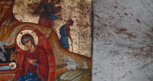 Damascus, Syria Blood stains a religious icon of the Virgin Mary and Child inside the Greek Orthodox Saint Elias church in Dweil’a. A suicide bombing by Islamic State targeting a church in Damascus killed 22 people and wounded 63, Syrian state media said. The attack on Sunday night was the first significant IS operation and the first suicide bombing in Syria since Bashar al-Assad was toppled in December and replaced by an Islamist-led government Photo Read More » Share Twitter