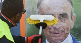 Nantes, France An employee pastes the official campaign poster of the media pundit and Reconquête party presidential candidate Eric Zemmour Photo Read More » Share Twitter