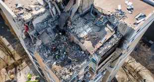 Kyiv, Ukraine Firefighters amid the rubble of a residential building that was hit by debris from a downed rocket Photo Read More » Share Twitter