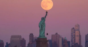 New York, US The harvest supermoon rises behind the Statue of Liberty and the Brooklyn skyline Photo Read More » Share Twitter