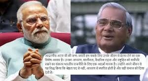 ‘भारत रत्न’ अटल बिहारी वाजपेयी की जन्म शताब्दी के अवसर पीएम मोदी ने बेहद खास पोस्ट लिखी है। प्रधानमंत्री मोदी ने कहा कि अटल जी की जन्म-जयंती हम सबके लिए उनके जीवन से प्रेरणा लेने का एक विशेष अवसर है। पूर्व प्रधानमंत्री अटल बिहारी वाजपेयी की आज 101वीं जयंती है। इस मौके पर प्रधानमंत्री नरेंद्र मोदी ने उन्हें नमन किया …