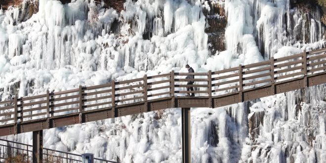 Daegu, South Korea A cold wave creates a giant ice wall at Songahe Park 300km south-east of Seoul