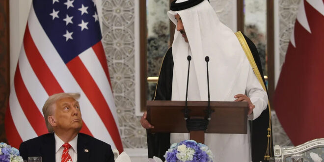 Doha, Qatar President Donald Trump and Emir of Qatar Tamim bin Hamad al Thani attend a state dinner at the Lusail Palace