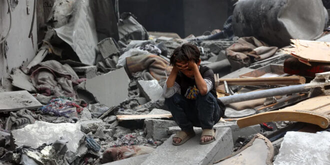 Gaza A Palestinian boy sits on the rubble of a building at the site of an Israeli strike on a residential area in the neighbourhood of Shujaiya in Gaza City. At least 29 Palestinians, including children, were killed on Wednesday from the Israeli strike, local health authorities said