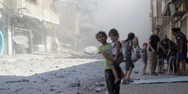 Home / Photo / Gaza City Palestinian children at the site of Israeli strikes. Benjamin Netanyahu has vowed to ‘finish the job’ in Gaza, adding that recognition of a Palestinian state was ‘insane’ as delegations walked out of his address to the UN. Days after Australia, Canada, France, the UK and other countries broke with the US to recognise an independent Palestinian state, the Israeli prime minister called a two-state solution ‘sheer madness. It’s insane, and we won’t do it’