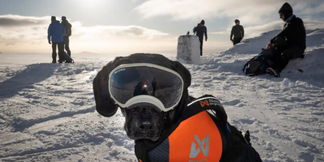Home / Photo / Glenshee, Scotland Skier Cieran Marschal and his dog Kai enjoy the favourable weather conditions on snow-covered hills