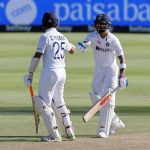 इस दौरान, मयंक अग्रवाल (7) रन बनाकर कगिसो रबाडा के शिकार बने, तो वहीं केएल राहुल (10) रन बनाकर मार्को जेनसेन को अपना विकेट देकर पवेलियन लौट गए। इस समय तक दूसरी पारी में 5.5 ओवरों में भारत ने दो विकेट खोकर 24 रन बनाए।