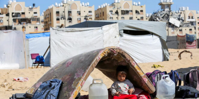 Home / Photo / Khan Younis, Gaza A displaced Palestinian girl waits to flee Hamad City with her family after an Israeli evacuation order