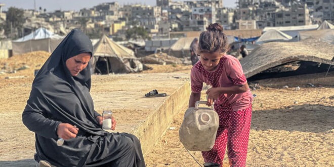 Home / Photo / Khan Younis, Gaza Alaa Shabat has moved with her six children into a tent in the grounds of the city’s so-called Austrian cemetery after her husband became too ill to work