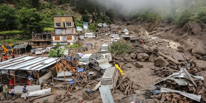 Kishtwar, India Damaged houses and vehicles at the site of a flash flood in a village in the district of Kishtwar. At least 56 people died and 80 are missing after a sudden rainstorm in Indian Kashmir, the second such disaster in the Himalayas in a little over a week