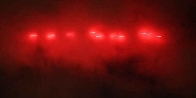 Home / Photo / Kyiv, Ukraine Glowing red tracer rounds appear amid rising smoke as Ukrainian air defences fire at Russian drones and missiles