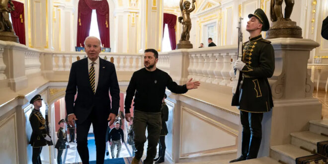 Kyiv, Ukraine Joe Biden meets Volodymyr Zelenskiy at the Mariinsky Palace during the US president’s unannounced visit to Ukraine