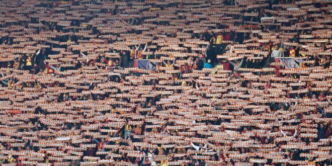 Home / Photo / Lens, France Supporters of RC Lens hold up scarves before the French Cup semi-final football match against Toulouse FC at the Stade Bollaert-Delelis