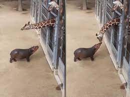 कुछ जानवर ऐसे होते हैं जो अलग-अलग प्रजाति के होकर भी एक दूसरे से बेहद लगाव रखते हैं. उनकी दोस्ती बाकी सबके लिए मिसाल बन जाती है. ऐसे न जाने कितने ही वीडियोज़ सोशल मीडिया पर देखने को मिल जाते हैं. जहां जानवरों के बीच की बॉन्डिंग और प्यार और मेल मिलाप हर किसी का दिल जीत लेता है. ऐसा ही एक वीडियो वायरल हो रहा है जहां हिप्पो और जिराफ की दोस्ती देख दिल को सुकून मिलेगा.