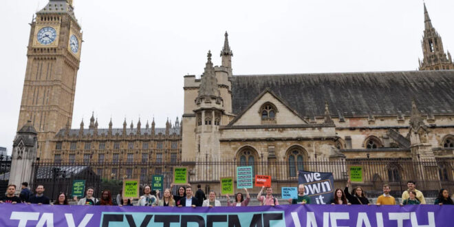 Home / Photo / London, UK The Green party MP for Brighton Pavilion, Siân Berry, and the party’s MP in Waveney Valley, Adrian Ramsay, join demonstrators outside the Houses of Parliament on the morning of the government’s spending review