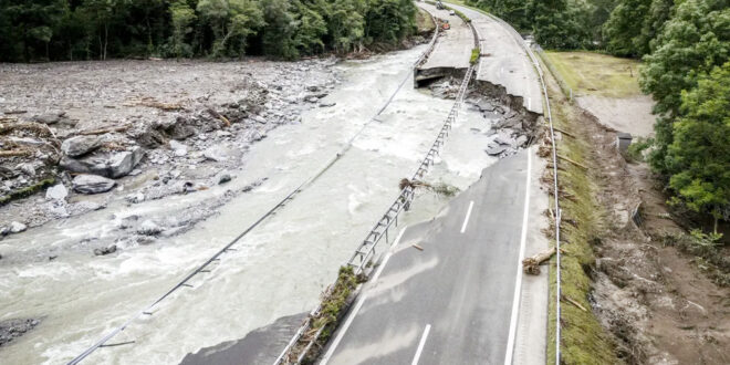 Home / Photo / Lostallo, Switzerland Damage to highway A13 between Lostallo and Soazza caused by the force of the Moesa River after heavy rain in the Misox valley