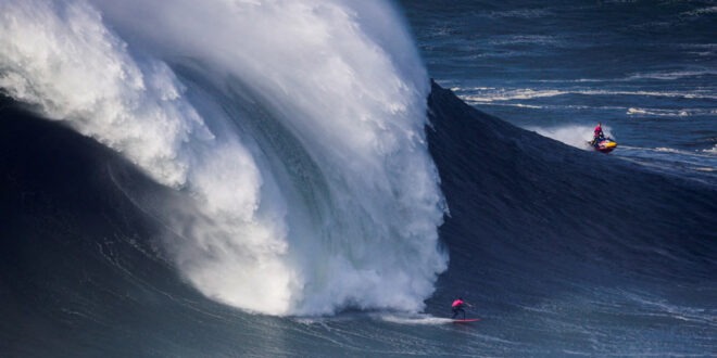 Nazaré, Portugal João Chianca of Brazil rides a wave during a World Surf League big wave challenge session