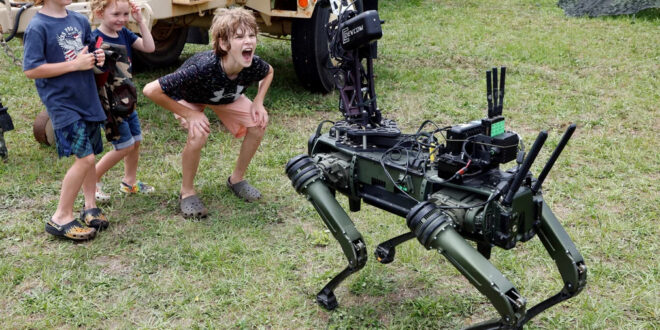 NC, US Lone Wolf, a military robotic dog, entertains children at the America 250 Celebration at Fort Bragg in Fayetteville