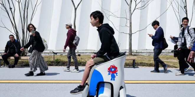 Osaka, Japan A visitor tries to manoeuvre a Honda Uni-One hands-free electric mobility device during Expo 2025