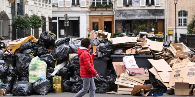Paris, France A pedestrian walks past household waste, which has been piling up roadside since collectors went on strike against the government’s proposed pensions changes
