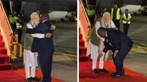 प्रधानमंत्री नरेंद्र मोदी तीन देशों की अपनी यात्रा के दूसरे चरण के लिए रविवार (21 मई) को पापुआ न्यू गिनी पहुंचे. पीएम मोदी एफआईपीआईसी (FIPIC) शिखर सम्मेलन में शामिल होने पापुआ न्यू गिनी पहुंचे हैं. जहां पापुआ न्यू गिनी के प्रधानमंत्री जेम्स मारापे (James Marape) ने उनका स्वागत किया. इस दौरान पापुआ न्यू गिनी के प्रधानमंत्री ने भारत के प्रधानमंत्री नरेंद्र मोदी के पैर छूए.