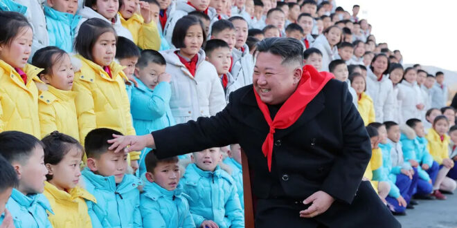 Home / Photo / Pyongyang, North Korea The North Korean leader, Kim Jong-un, greets children who took part in a meeting of the country’s scouts