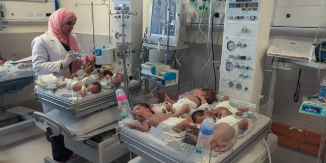 Rafah, Gaza Strip A Palestinian medic cares for premature babies, evacuated from al-Shifa hospital in Gaza City, before they are transferred from southern Gaza to Egypt. Twenty-nine premature babies arrived in Egypt on Monday, Egyptian media said, after their evacuation from Gaza’s largest hospital, which has become a focal point of fighting between Israel and Hamas