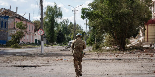 Home / Photo / Sudzha, Russia A Ukrainian soldier walks in the city centre of Sudzha in Russia’s Kursk region. Volodymyr Zelenskiy said Ukraine’s military incursion into Kursk aims to create a buffer zone to prevent further attacks by Moscow across the border.