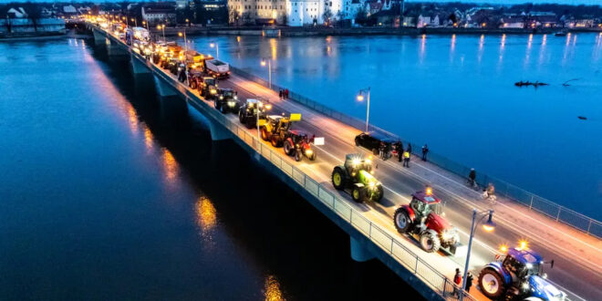 Home / Photo / Torgau, eastern Germany Farmers drive their tractors past Hartenfels Castle to protest against the federal government’s austerity plans
