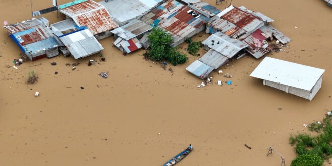 Tuguegarao, Philippines A man paddles a boat through flood waters past submerged houses in Cagayan province, north of Manila, after a river overflowed during heavy rains brought by Super Typhoon Fung-Wong