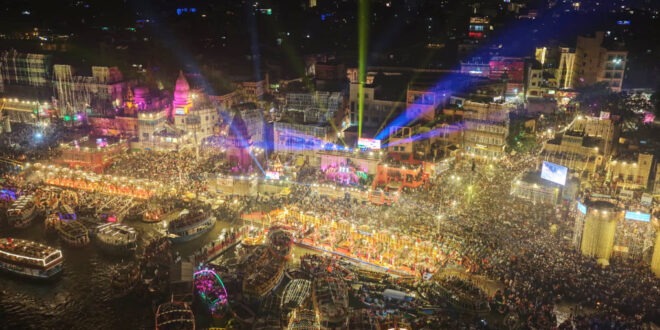 Home / Photo / Varanasi, India Thousands of devotees throng the ghats of the Ganges to watch a prayer ceremony during the Dev Deepavali festival, when the steps leading to the river glow with brightly lit earthen lamps