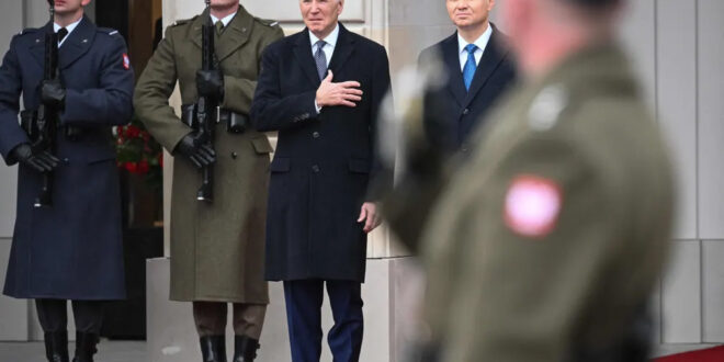 Warsaw, Poland The US president, Joe Biden, is welcomed by the Polish president, Andrzej Duda, for talks at the Presidential Palace