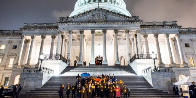 Home / Photo / Washington, DC, US The House speaker, Nancy Pelosi, leads other lawmakers outside the US capitol building in a moment of silence for the 900,000 Americans who lost their lives to Covid
