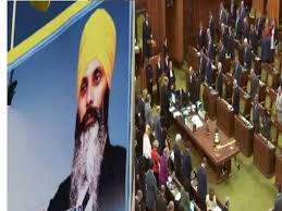 खालिस्तानी आतंकी हरदीप सिंह निज्जर की हत्या की बरसी पर कनाडा ने एक बार फिर अपना खालिस्तान समर्थक चेहरा बेनकाब किया है। मंगलवार को निज्जर की पहली पुण्यतिथि पर कनाडा की संसद में एक मिनट का मौन रखा गया। कनाडा की संसद में जब एक घोषित आतंकी को महिमामंडित किया जा रहा था तो उसी समय वैंकूवर में भारतीय वाणिज्य दूतावास के बाहर खालिस्तान समर्थक अलगाववादियों ने एक नकली अदालत लगाई। इसमें पीएम मोदी के खिलाफ नारेबाजी की गई और पुतला जलाया गया। कनाडा की संसद में आतंकी के महिमामंडन और खालिस्तान चरमपंथियों को खुली छूट पर भारत ने कनाडा को करारा जवाब दिया है।
