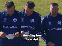 क्रिकेट के मैदान पर बहुत सी अजीबो गरीब चीजें देखने को मिलती रही है। कभी किसी का खिलाड़ी के जश्न मनाने का तरीका तो किसी का गेंदबाजी एक्शन या फिर बैटिंग स्टाइल लेकिन आईसीसी वनडे विश्व कप के क्वालीफायर में स्कॉलैंड और यूएई के बीच खेले गए मैच में जो देखने को मिला वह शायद ही कभी क्रिकेट के मैदान पर देखा गया था। दरअसल स्कॉटलैंड के गेंदबाज मार्क वॉट गेंदबाजी से पहले एक पर्चे को पढ़ते हुए दिखे।