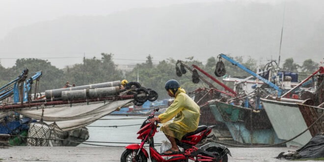 Yilan, Taiwan A man rides a scooter amid heavy rain as Typhoon Fung-Wong approaches